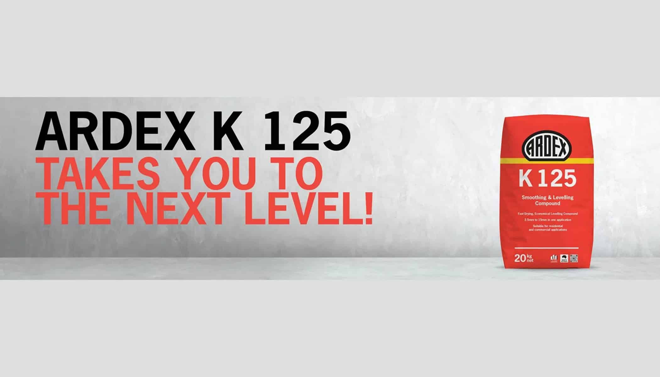 finish. K125 is suitable for a variety of substrates, making it a reliable choice for levelling and smoothing sub-floors. ARDEX K125 Smoothing and Levelling Compound is a fast drying, 2.5mm to 15mm, economical levelling compound, suitable for internal residential and commercial applications, walkable in 2 – 3 hours and resilient floor coverings from 18 hours.