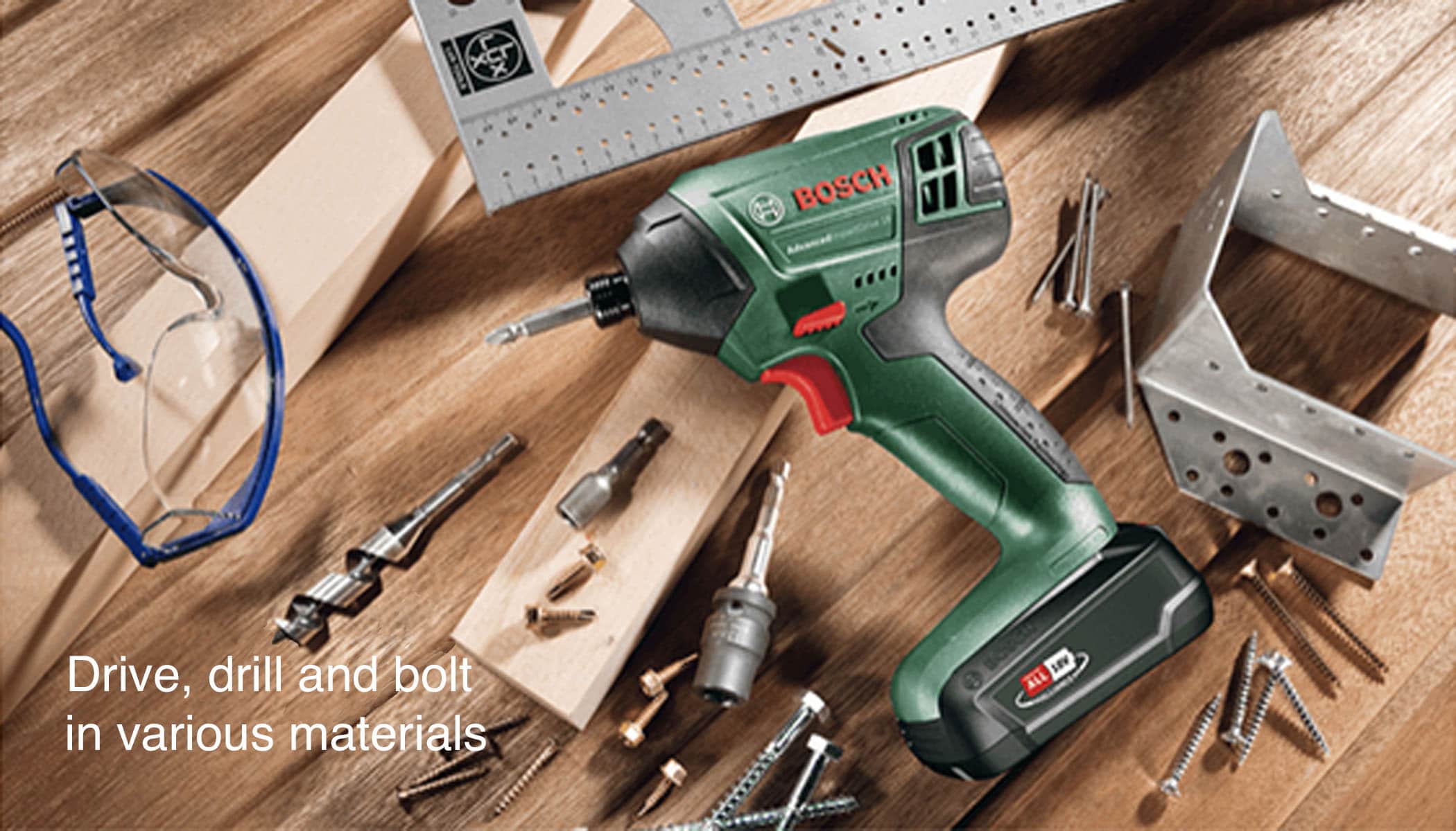 Tough work made simple – the easy-to-use cordless Bosch AdvancedImpactDrive 18 features a compact head length of 155 mm for screwdriving, drilling, and bolting projects in confined areas. Its 130 Nm of powerful torque tackles tough jobs in a flash thanks to a high impact rate of 0-3,200 per min. The Bosch AdvancedImpactDrive 18 impact wrench is perfect for screwdriving or bolting in wood (soft, hard) and metal as well as drilling in wood (soft, hard), metal, mortar, and brick.