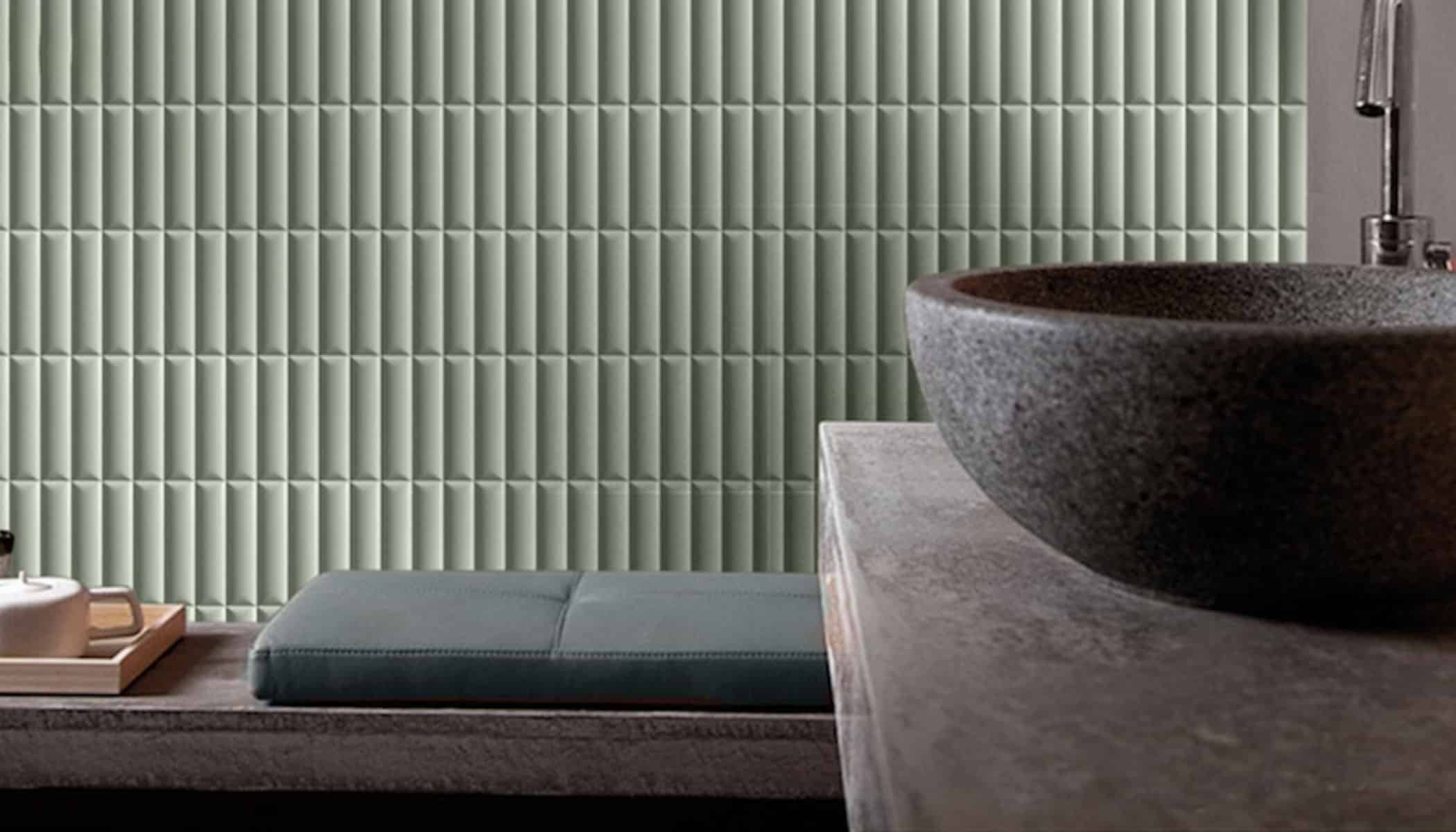 Convexo Verde Satin Subway Tile