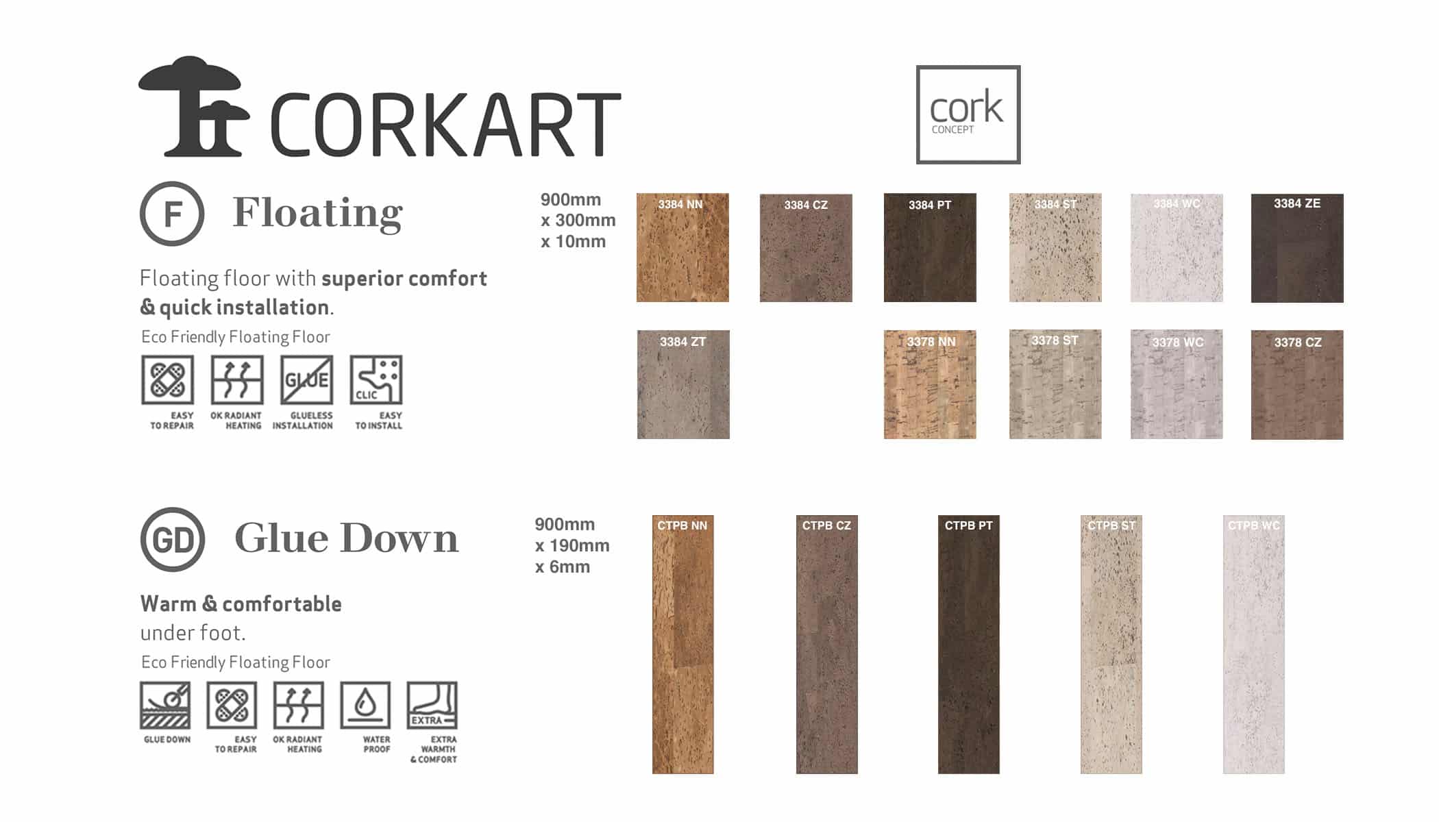 For further instructions on how to lay your ‘CorkArt Cork Concept Flooring CTPB WC’ please refer to the attached pdf – “Glue-Down Floor Installation Instructions”