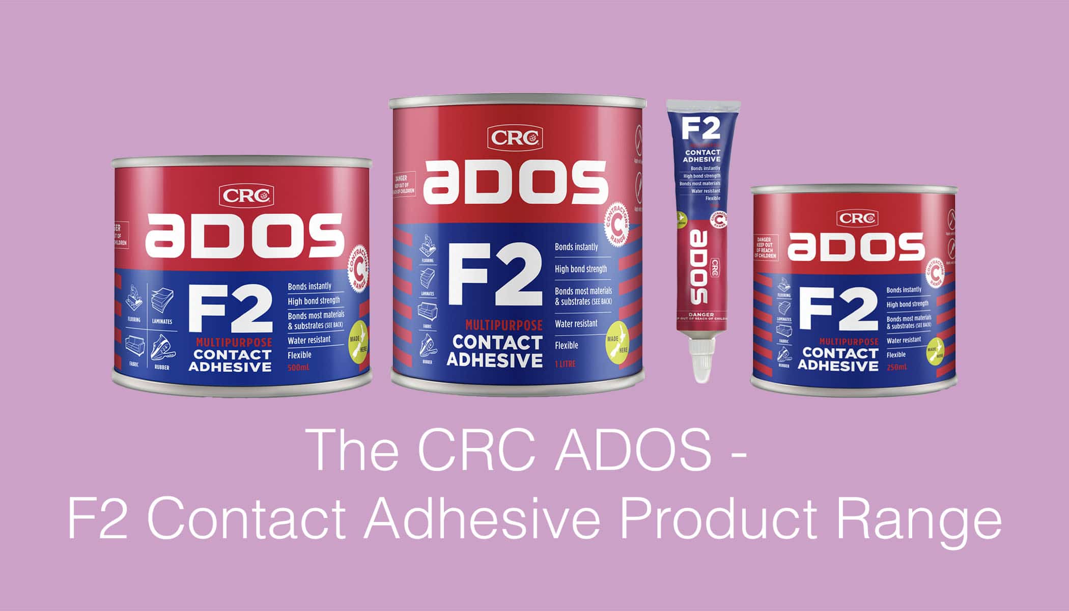 CRC ADOS F2 Contact Adhesive is a high performance general purpose contact adhesive. It is water resistant and flexible and its high bond strength makes it ideal for a wide range of uses. CRC ADOS F2 Contact Adhesive is easily applied highly versatile, durable and bonds instantly to most substrates.