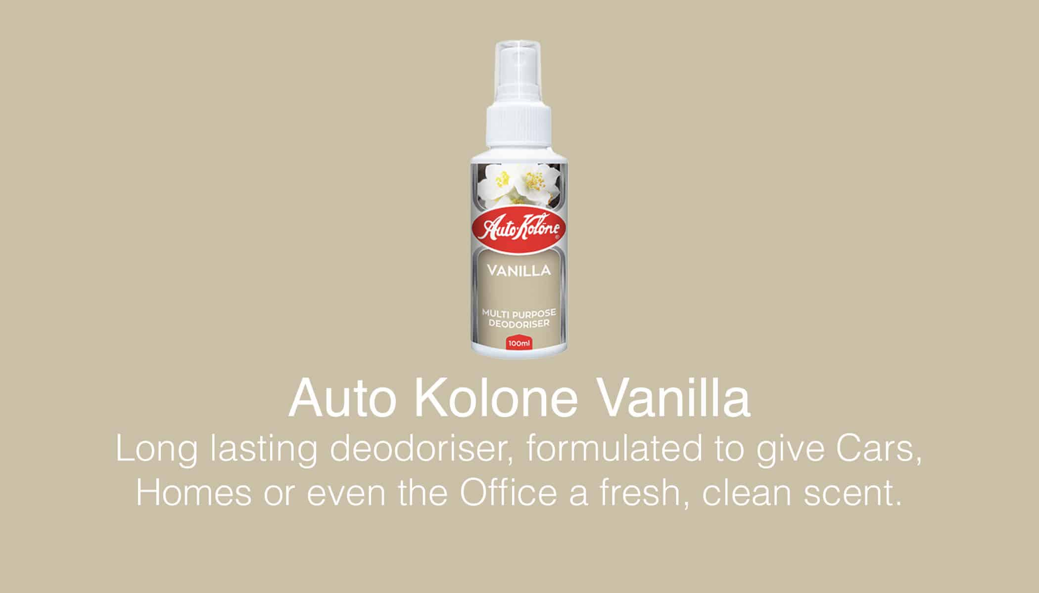 popular Auto Kolone range. It is a long lasting deodoriser, formulated to give cars,