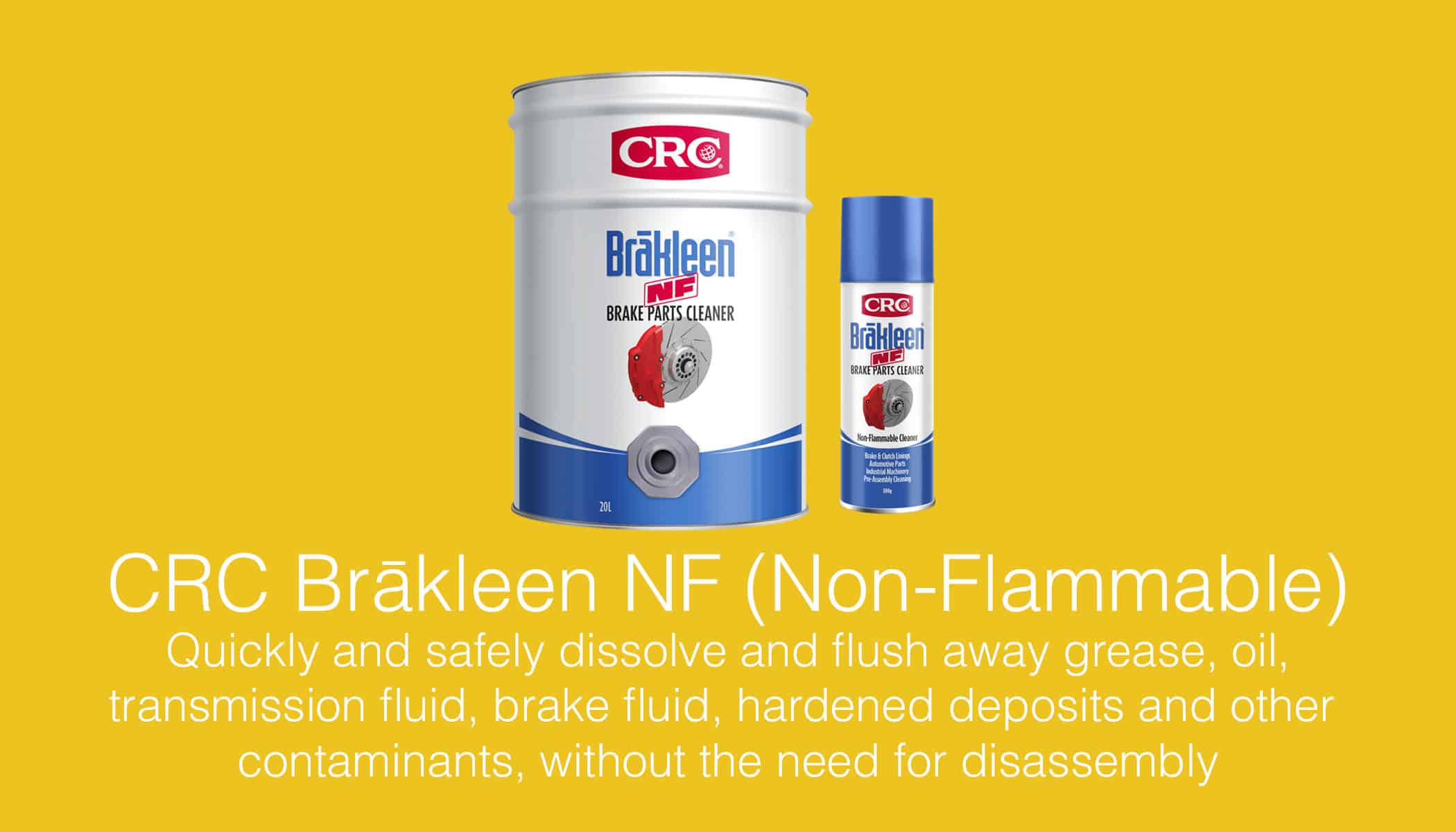 CRC BRAKLEEN NF (NON FLAMMABLE) is a powerful, heavy duty cleaner and degreaser for brake, clutch parts and general mechanical equipment. It is formulated to quickly and safely dissolve and flush away grease, oil, transmission fluid, brake fluid, hardened deposits and other contaminants, without the need for disassembly – reducing maintenance costs. It’s also perfect for degreasing components prior to reassembly – especially prior to thread locking.