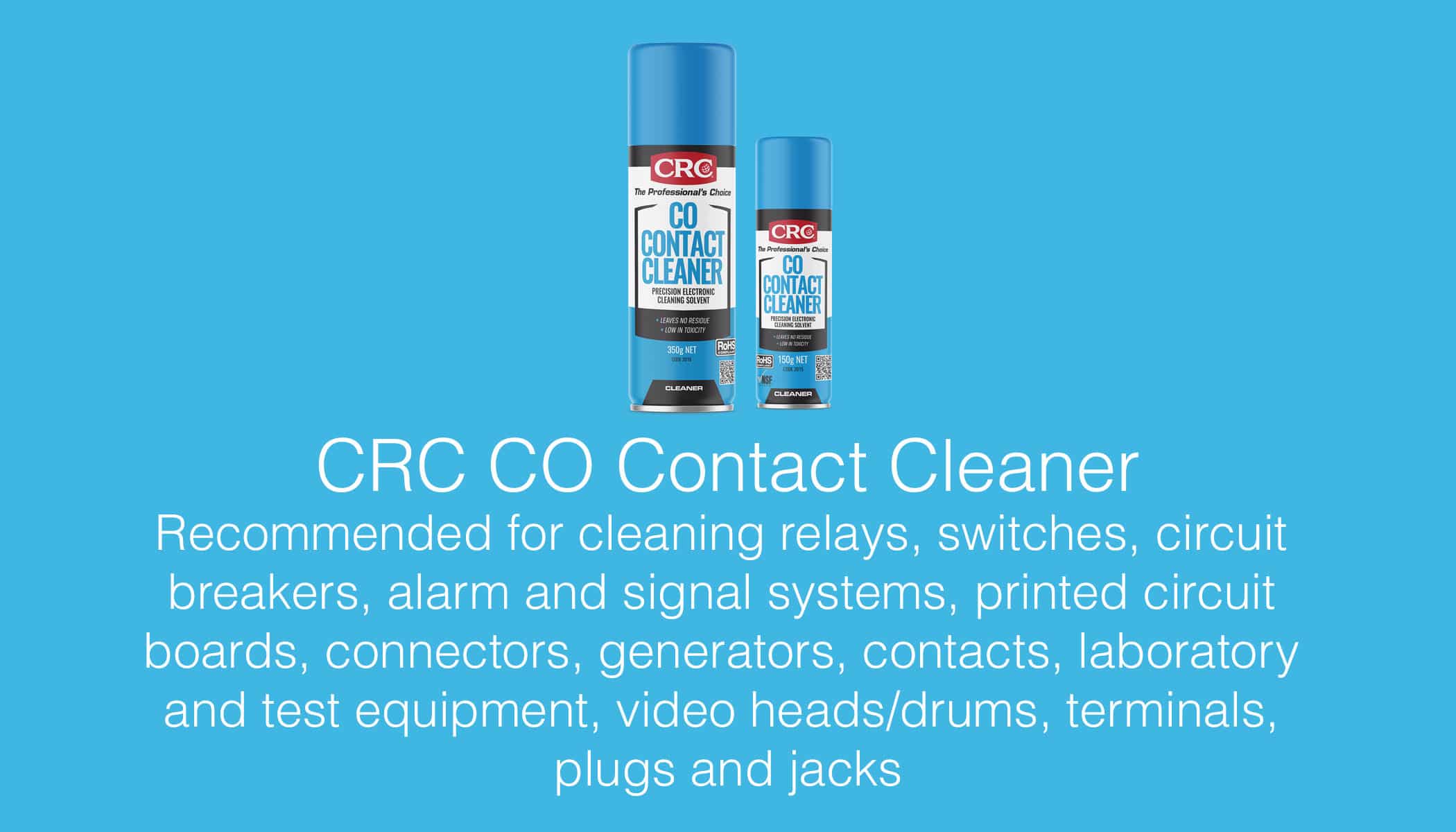 CRC CO Contact Cleaner Aerosol is a unique, plastic safe, scientifically formulated, technically proven, stable, inert high purity cleaning solvent. Non-corrosive, non-staining, rapid complete evaporation and contains no lubricants. Contains COZOL – a special proprietary blend of solvents which enhances the cleaning power without damaging plastics.