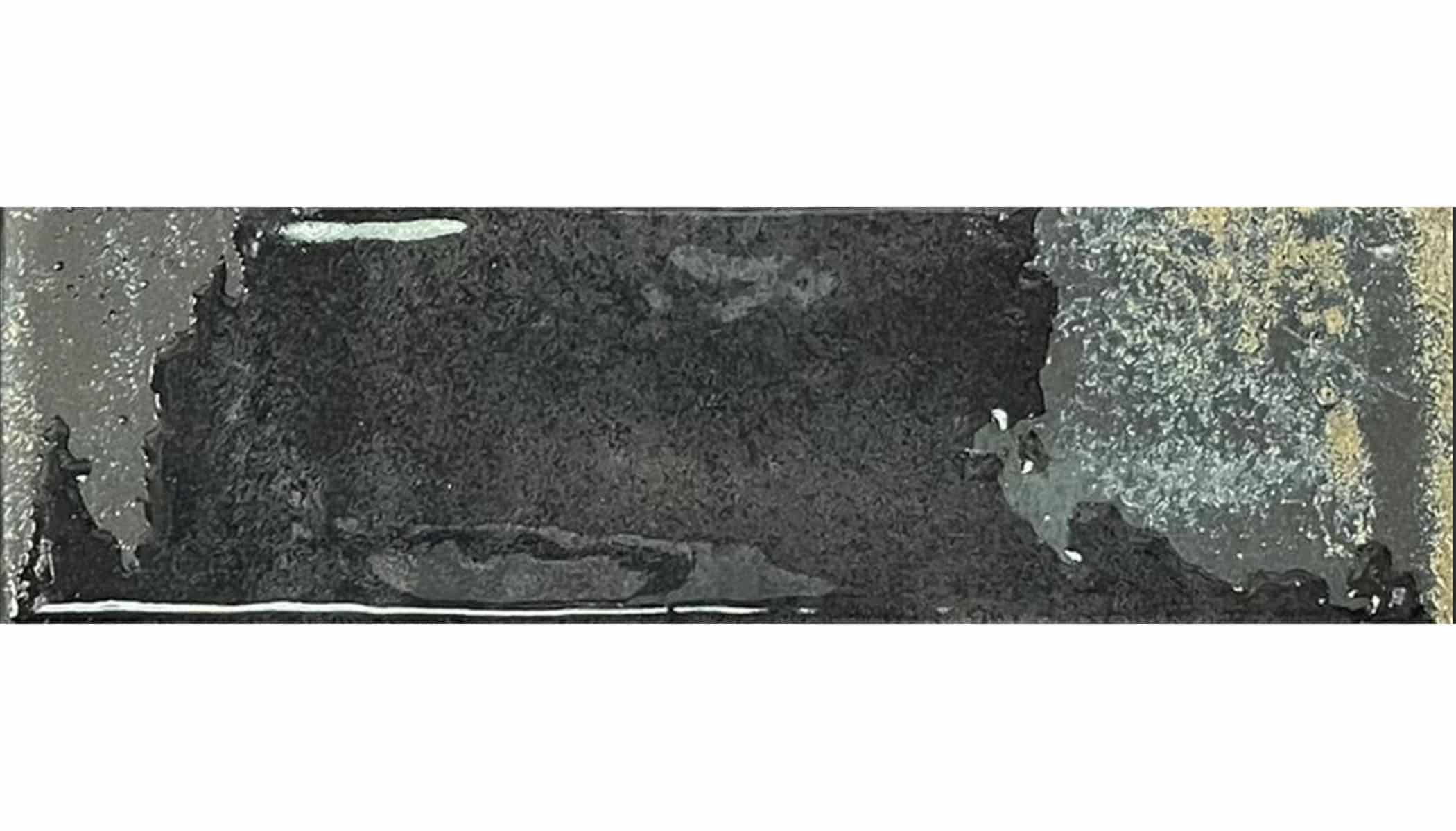 With a deep and captivating tone, this porcelain tile in a 6.4×22.3 cm format with a glossy finish brings elegance and solidity to spaces. Inspired by dark stone, it exudes a sophisticated and timeless appeal, perfect for creating contrasts and highlighting the material and artisanal richness of the collection. Its subtly rippled surface enhances the interplay of light and shadow, giving each space a warm and immersive atmosphere.