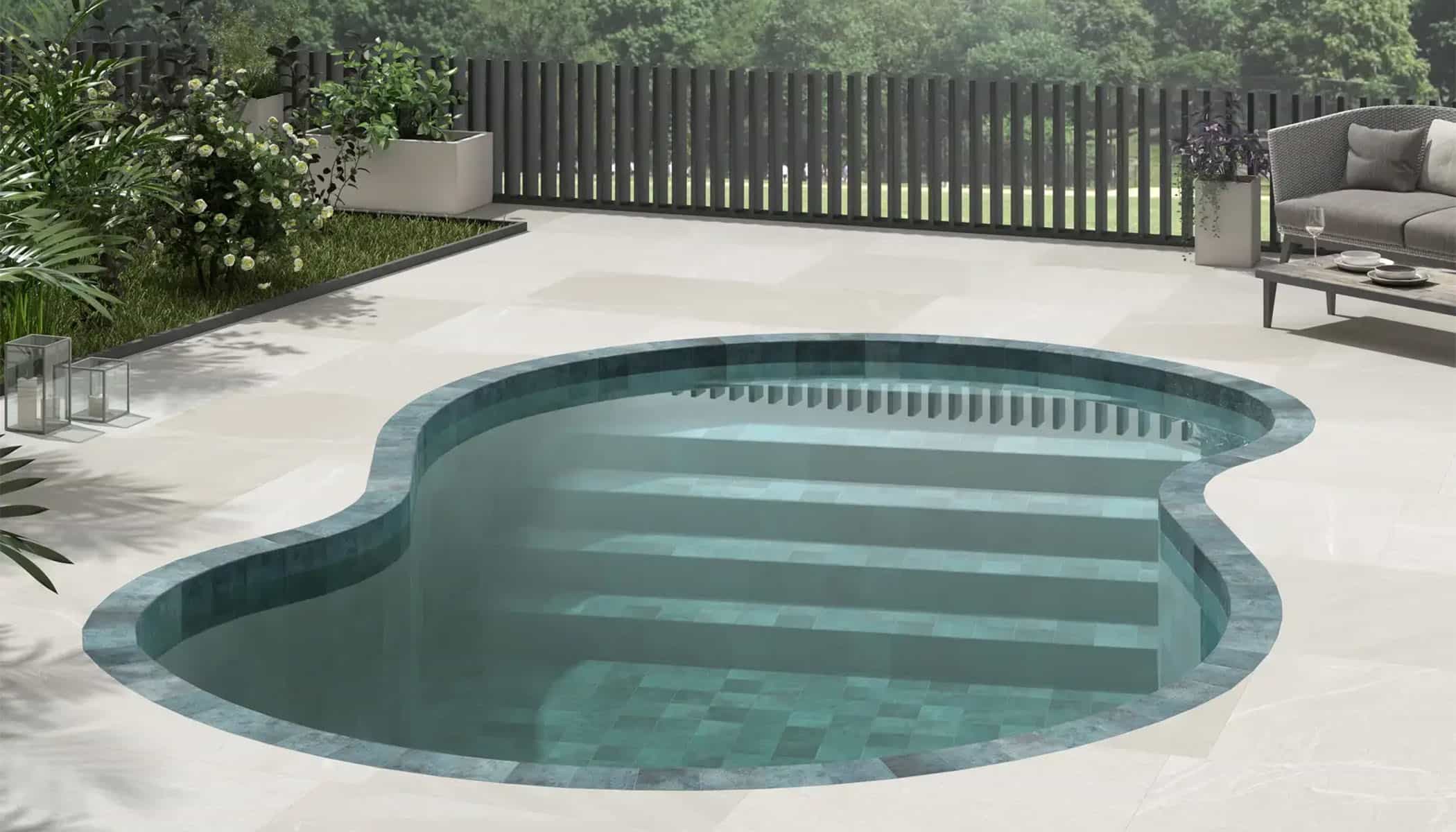 The natural beauty of the Tahiti island and its inspirational culture are joined with the white sand light and the turquoise waters of its beaches to create a new collection of tiles that invites you to immerse yourself in the ocean depths. Tahiti suggests a pool tiles series inspired by the beautiful landscapes of this Pacific island and with an aspect that reminds us of the Balinese stone, a complete trend in pool design.
