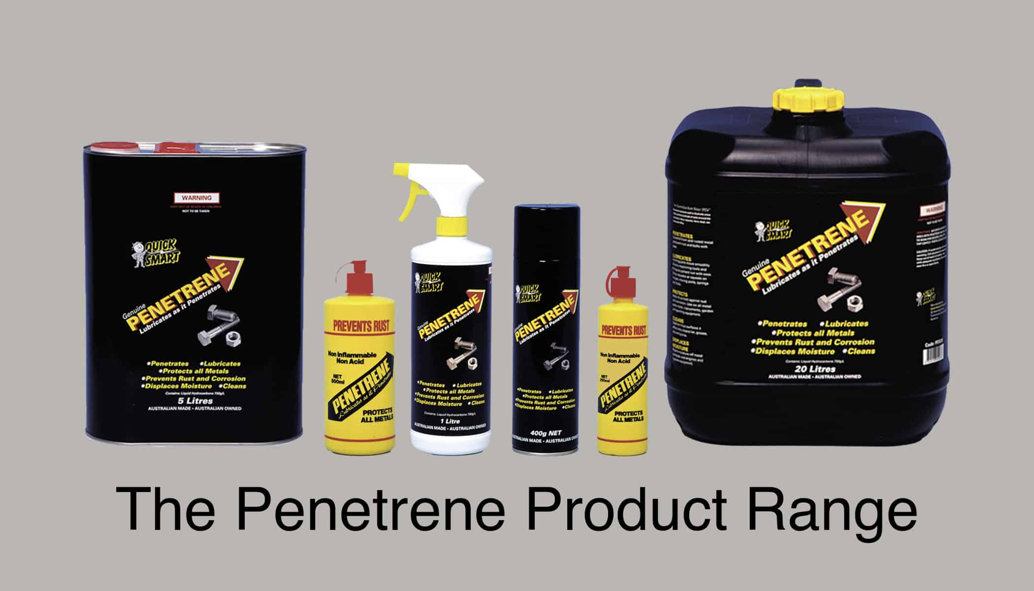Penetrene is now available in a convenient 400 gram aerosol, the handy Penetrene Oil Squeeze Bottle in 250ml and 500ml, 1 litre pump spray, a bulk 5 litre and 20 litre pack as well as an all conquering 200 litre drum.