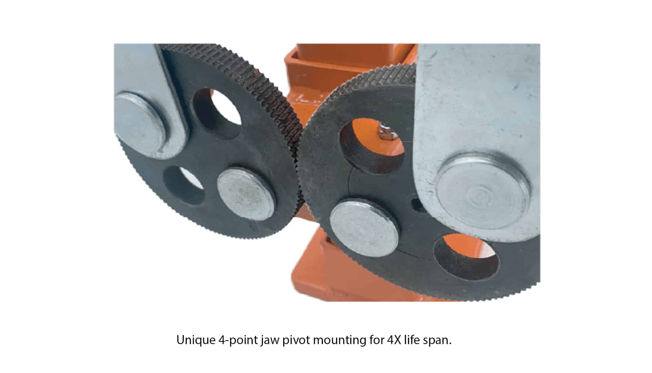 • 4-Point Pivot – providing 4X durability for the hardened jaws