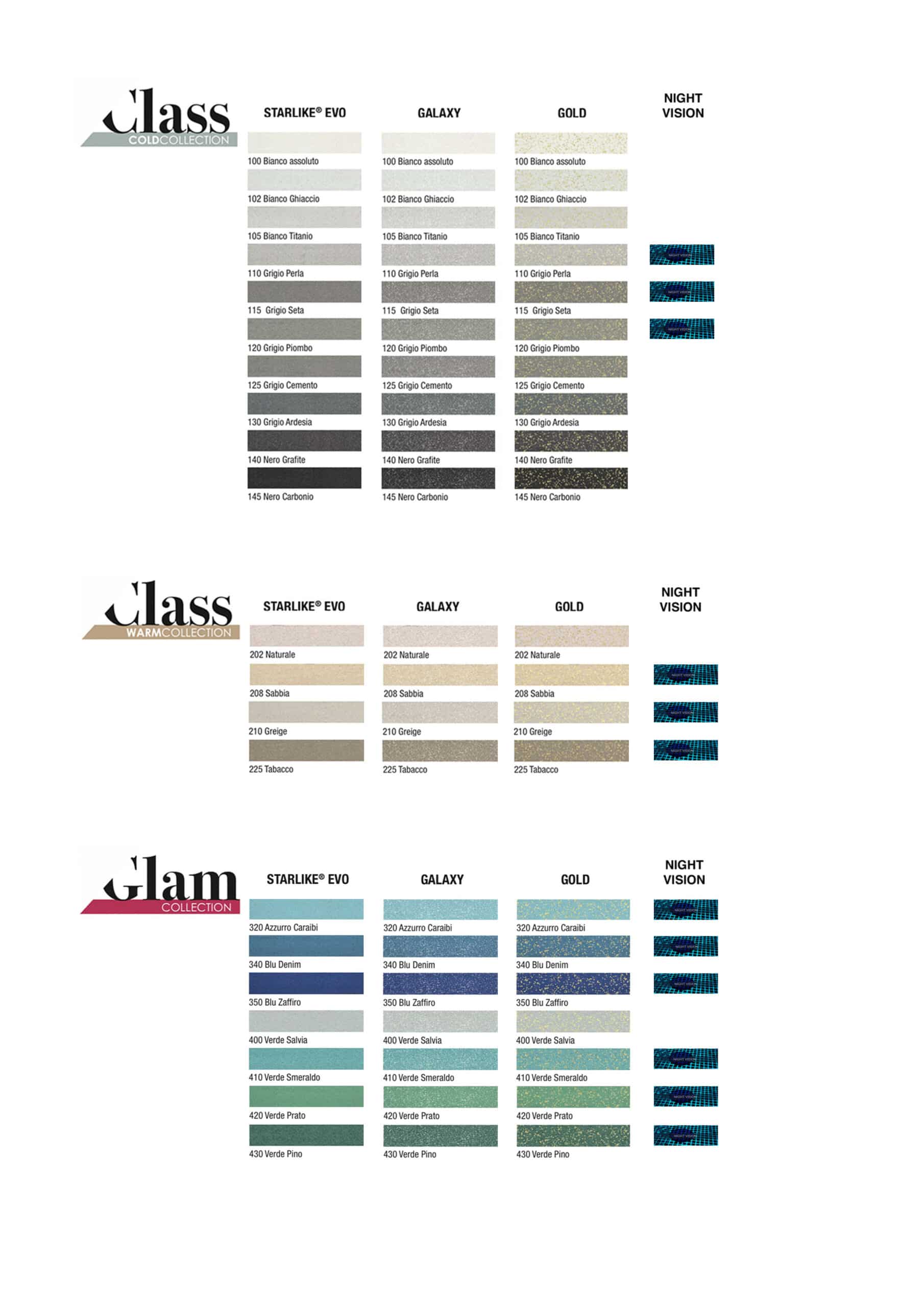 Each of these Collections can be further enhanced by the addition of ‘glitter’ accessory Finishes, being labelled as Galaxy (a fine GREY metallic), Spotlight (a bold GREY reflective metallic) and Gold (a bold GOLD reflective metallic).